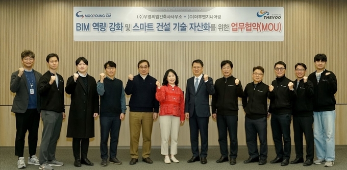 무영씨엠건축사사무소(이하 무영CM)는 더부엔지니어링과 BIM(Building Information Modeling, 건설정보모델링) 역량 강화 및 스마트 건설 기술 자산화를 위한 업무협약을 체결했다고 10일 밝혔다.