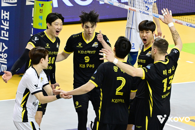 KB손보(16승 15패)는 승점 50을 확보해 4위 한국전력(승점 46)과 격차를 승점 4로 벌렸다.