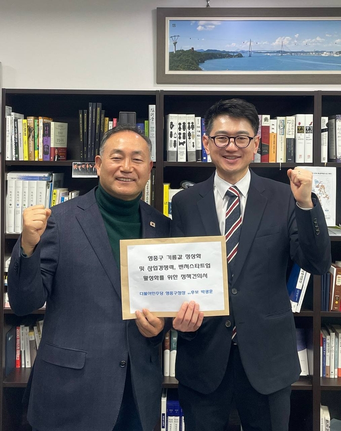 10일 박 예비후보에 따르면 지난 9일 국회 산업통상자원중소벤처기업위원회 여당 간사인 김원이 의원을 만나 영종도의 비정상적인 유가 구조 개선과 안정화 대책 마련을 촉구하는 건의문을 전달했다.