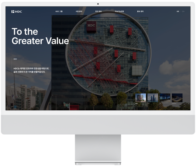 지주사 HDC 홈페이지는 그룹의 산업구조와 기업 철학을 전달하는 플랫폼으로, IPARK 홈페이지는 브랜드 경험과 라이프스타일 가치를 전달하는 플랫폼으로 각각의 역할을 강화했다.