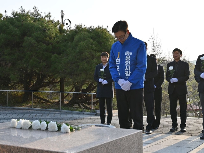 이날 헌화를 마친 현 후보는 "1919년 3월 21일 원삼면에서 시작된 함성은 용인 전역으로 들불처럼 번져나갔다"며 "권력의 총칼 앞에서도 굴하지 않았던 시민들의 용기는 오늘날 용인을 지탱하는 거대한 뿌리"라고 말했다.