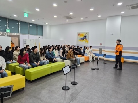 이번 교육은 총 120분 4개 분야 체험과정으로 ▲응급처치 ▲항공기 사고 발생 시 행동요령 ▲화재 발생 시 대피요령 및 완강기 사용법 ▲자연재난 및 교통안전사고 발생 시 행동요령 등으로 구성되어 있으며 재난현장의 실제 위급상황 시 대처 능력을 숙지하여 향후 직무를 수행하게 될지 모르는 재난담당 공무원으로서 역할과 자세를 익히기 위해서다.