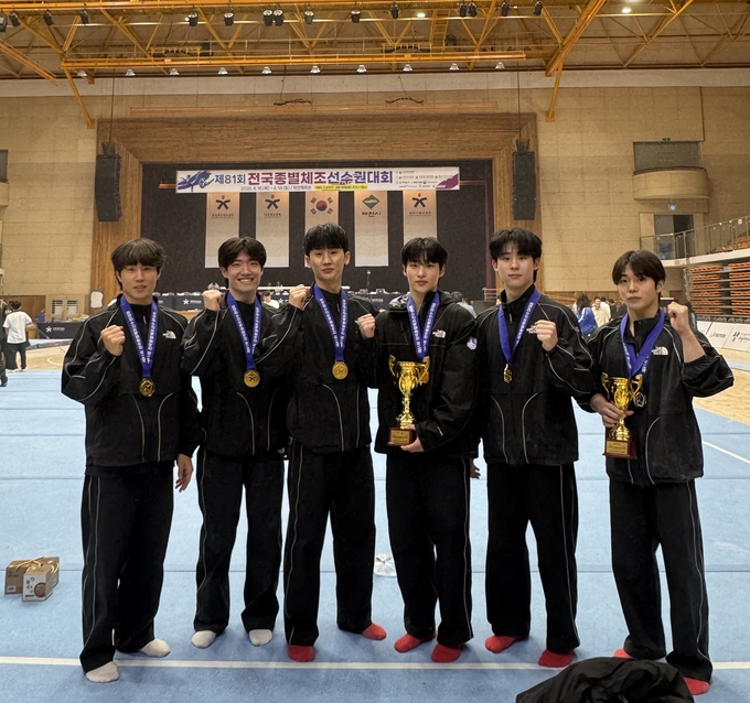 수원시가 제81회 전국종별체조선수권대회 남자일반부 단체전에서 정상에 올랐다.