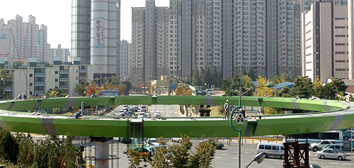 전국 최초로 설치되는 원형육교는 한 번 올라서면 사방으로 갈 수 있는데 인근 5개 초,중,고교와 아주대 등 학생들만 하루 5천명이상이 이용할 전망이다.