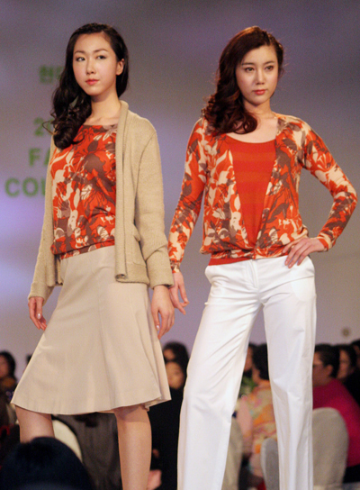 23일 오후 호텔 리츠칼튼 지하 3층 그랜드 볼륨에서 열린 현대백화점 압구정본점 'S/S패션쇼'에서 모델들이 화려한 봄의상을 입고 포즈를 취하고 있다.
