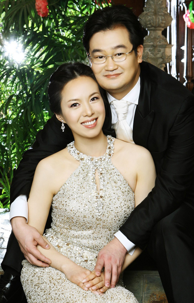 19일 오후 서울 하얏트호텔 그랜드볼룸에서 결혼식을 올리는 MBC 앵커 김은혜(왼쪽)와 국제변호사 유형동 커플의 다정한 웨딩사진. /MBC제공
