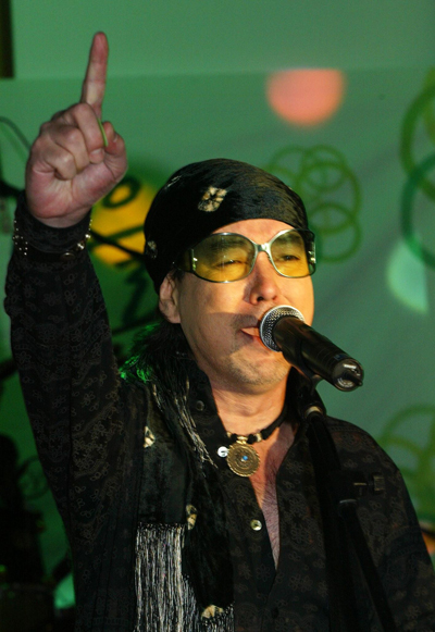 25일 가수 윤수일이 한강유람선에서 열린 7년만의 컴백 쇼케이스에서 타이틀곡인 '숲바다섬마을'을 열창을 하며 손락락을 세우며 제스쳐를 보이고 있다.