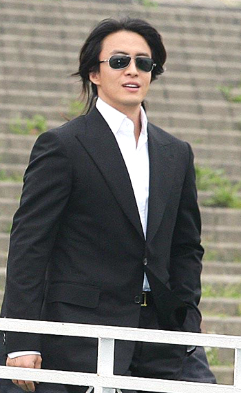 영화배우 배용준이 22일 오후 서울 한강시민공원 아리랑웨딩홀에서 열린 매니저 이용규의 결혼식에 참석하기 위해 걸어가고 있다.