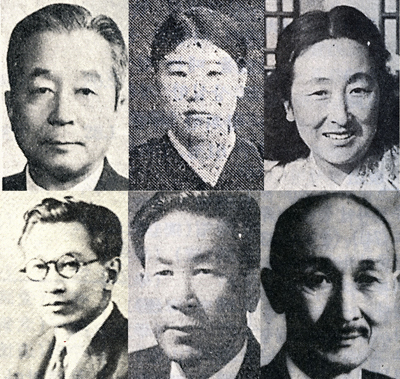 올해 탄생 100주년을 맞은 작가들. 소설 '김강사와 T교수' 등을 남긴 유진오, 일제시대 최고 사실주의 작가로 평가받는 강경애, 1930년대 여성소설의 경지를 개척한 최정희(위 왼쪽부터), '해외문학'의 동인으로 활동하면서 국내 문단에 번역시를 다수 소개한 이하윤, 아동문학가 이주홍, 시조시인 조종현(아래 왼쪽부터).