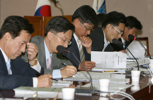 16일 오전 경기도청 상활실에서 열린 '양극화 해소 제2차 토론회'에 참석한 각부처 실무담당자들이 진지한 표정으로 토론회자료를 보고 있다.