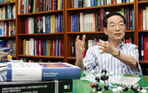 6년여의 연구끝에 최근 '금속성 플라스틱'을 발견해 네이처誌에 논문을 발표한 아주대 이석현교수가 후일담을 소개하고 있다.