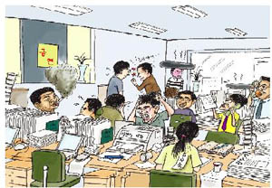 신문기자라는 직업도 고달프기 그지없다. 일정부터가 꽉 짜여 옴짝달싹 할 수가 없다. 여덟시 반부터는 각 부서회의가 있고, 아홉시부터는 부장회의가 시작된다. 이 때부터, 부장 미만의 기자들은 각자의 출입처로 떠난다. 그리고 기사를 쫓아 정신없이 현장을 누비고 다닌다. 점심을 넘길 때가 적지 않다. 그나마 꽤 괜찮은 기사거리가 있으면 공복감도 잊을 수 있다. 하지만 그런 기사도 흔하지는 않다. 더구나 중앙일간지와 차별화를 꾀하고, 한 발 앞서 도착해야 한다는 어쩔 수 없는 강박관념까지 더해지면 신경을 쉽게 늦출 수 없다.