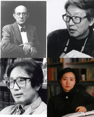 시계방향으로 쇤베르크, 장정익, 이신우 백병동 작곡가.