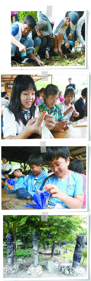 친구들과 체험장에 놓인 널뛰기를 뛰는데 맘처럼 쉽질 않았다. 마당 양 옆 시냇물가에서 장난 치는 남자 아이들. 나는 널뛰기를 하다가 토종닭이랑 오리를 보고, 한 쪽에 가득있는 김치독이랑 장독들을 봤다. 아저씨에게 물어보니까 김장철에 여기와서 김치를 담구면 독에 담고 명찰을 달아준다고 했다.