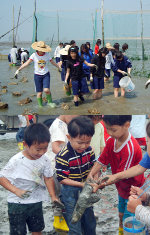 지난 5월부터 본격적으로 갯벌생태계체험을 운영하고 있는 화성제부모세마을의 대표 프로그램으로는 ‘그물 물선보기’를 꼽을 수 있다. 갯벌에 그물을 매어놓고 그것에 걸린 고기를 직접 잡는 것.