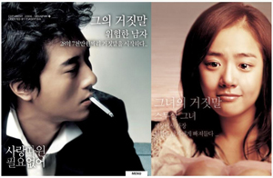 네티즌들의 시선을 가장 먼저 사로잡는 것은 카리스마 넘치는 차가운 표정의 김주혁과 눈에 눈물을 가득 머금은 채 슬픈 미소를 띠고 있는 문근영. ‘대문’을 장식하고 있는 두 주인공의 상반된 모습은 영화의 큰 얼개를 단적으로 보여준다. 이어 페이지를 클릭할 때 마다 화면 가득 등장하는 영화 속 아름다운 영상이 눈길을 끈다. 삿뽀로의 끝없이 펼쳐진 설원과 싱그러운 녹차 밭, 밤의 쾌락을 화려하게 펼쳐 보이는 아도니스 클럽 등 영화 속 주요 공간이 펼쳐진다.