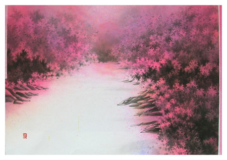 특히 대각선과 호선의 한국화적 구도는 원근의 풍경을 잘 드러내고 실제하지 않을 것 같은 색감은 신비로움을 더한다.