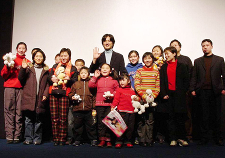 11일 중국 허난성 정저우시의 오스카극장에서 열린 로맨틱코미디 영화 `좋은 사람 있으면 소개시켜줘'의 시사회에서 주연배우 정준호가 무대인사를 마치고 극장 직원. 관객들과 기념촬영을 하고있다.