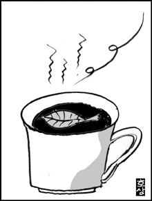 커피를 한 잔 타 들고 작은 식탁에 앉는다. 열린 창으로 찬 기운이 들어온다.
