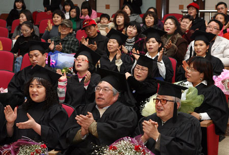 25일 오후 수원시 영통사회복지관에서 열린 ‘자활참여주민을 위한 인문학 졸업식’에서 한모(38·여)씨는 감격의 눈물을 흘리며 새로운 삶을 향한 의지를 다졌다.