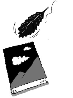 붉은 참나무 잎 조심스레 책갈피에 다시 끼워 넣는다.