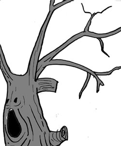 숲을 떠나지 못하고 서성였다. 나무들을 둘러보았다. 나무들마다 크고 작은 옹이를 달고 있었다. 큰 수박 보다 커 보이는 큰 옹이도 있었고 사과나 참외처럼 작은 옹이들도 있었다. 한 몸에 옹이들을 여러 개 달고 있는 나무들도 있었다. 그 모습이 참으로 기이해 우스꽝스러웠다. 어떤 옹이는 우는 듯 표정을 짓고 있었고 어떤 옹이들은 웃는 듯 표정을 짓고 있었다. 그러나 슬픈 웃음이었다. 하기야 눈과 얼음으로부터 제 몸 제 삶을 지켜내기 위해 안간힘을 다해 생겨난 옹이들이 웃고 있으리라고 생각하는 것 자체가 부끄러운 일이다.