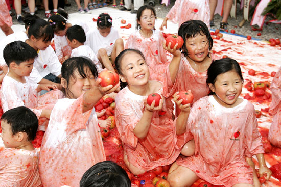 토마토 풀장·탑쌓기 등 행사 다양… 年 10만명 방문 지역축제로