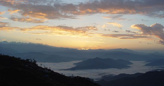 * 나갈코트로 떠나는 도보여행- 저녁 구름에 쌓인 태양이 홍시를 닮았네