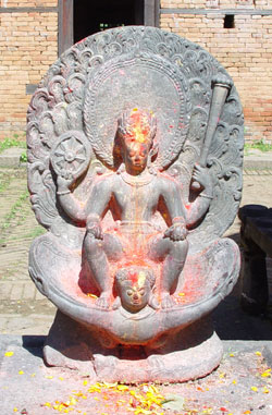 입구에서 돈을 내고 들어간 힌두사원은 계단을 따라 좌우로 탕카(두루마리 종교그림-기하학적인 문양화)인지 또 다른 전통그림인지 문양을 그려내는 사람들이 있고, 사원을 둘러친 인가에서 사람들은 여기저기 빈터에 벼를 말리고 있다. 짱구 나라얀 사원은 1,700년이 넘은 비시누 사원으로 네팔의 예술사를 담고 있는 유적이다.