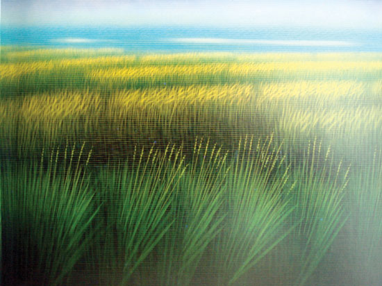 고요하고 한적한 어느 마을의 저수지나 안개 낀 강가에서 볼 수 있음직한 갈대들이 작가의 작품 속에서 생동감 있게 산들거리며 향연을 펼치고 있었던 것이다. 노란색과 황색 그리고 녹색의 빛들이 고요함 속에서 떨림이 되어 보는 이들의 마음을 자극했다.