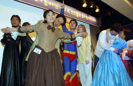 9일 오전 조선호텔에서 카프리맥주와 씨네버스 공동주최로 열린 '영화속 연인들의 화이트데이 커플 선발대회'에 참가한 연인들이 영화속 장면을 연기하고 있다.