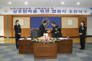인천지방경찰청(청장 김철주)과 인하대학교(총장 홍승용)는 지난 28일 인천청에서 상호협력에 관한 협정서 조인식을 가졌다.
