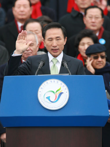 이명박(李明博) 대통령은 25일 오전 국회 의사당에서 임기 5년의 제17대 대통령으로 공식취임했다.