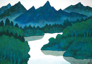 그는 비록 일본에서 얼마간 생활하고 활동하였지만, 그의 채색 그림에는 고구려의 강렬하고 선명한 벽화처럼 깨끗하면서도 윤택한 색의 흐름이 있다. 어떤 부분은 우리의 민족적인 기질처럼 투박하면서도 구수한 면이 있는가 하면, 한편으로는 슬픔에 차 있는 것 같기도 하고 쓸쓸한 가을을 노래하는 듯도 하다. 심신 깊숙이 삶의 애수가 느껴질 만큼 뭉클하면서도 정련된 색들은 불가의 극락정토를 연상시킬 만큼 고결하고 맑다. 모든 군더더기를 훌훌 털어버리고 남은 색의 정수만이 노스님이 그린 화면에서 산을 이루고 물을 이루고 꽃을 이룬다. ■ 글 = 장준석(미술평론가)
