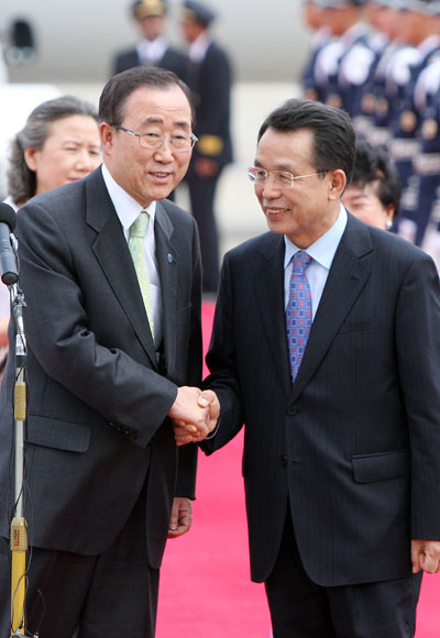 반가운 인사 나누는 반기문 사무총장