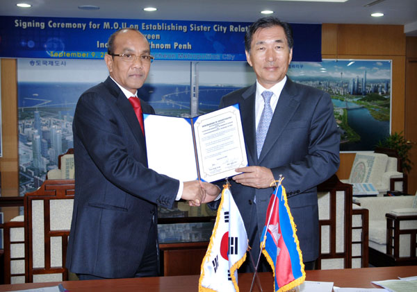 인천시는 9일 캄보디아의 수도 프놈펜시와 상호교류 증진을 위한 자매결연 양해각서(MOU)를 체결했다.