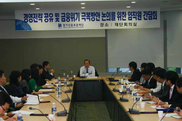 경기신용보증재단(이하 경기신보)은 21일 자금의 효율적 지원과 금융위기 극복방안을 논의하기 위해 중기센터 재단 회의실에서 임직원 간담회를 개최했다.