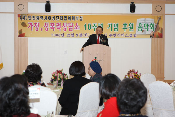(사)인천시 여성단체협의회부설 가정.성폭력 통합상담소(소장 홍희자·김신숙)는 지난 9일 주안 리더스 클럽에서 10주년 기념 후원음악회를 개최하고 폭력예방을 위해 최선을 다할 것을 다짐했다.