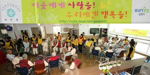 지난 17일에는 다가오는 설 명절을 앞두고 군포시노인전문센터에 입소해 있는 중풍과 치매 등으로 거동이 불편한 어르신들을 찾았다.