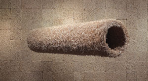 이 작업은 그런 이쑤시개를 거꾸로 본래의 형상으로 되돌리는 행위와 기하학적 형태를 통해서 이쑤시개라는 질료를 그대로 드러내는 이색적인 작품으로 탄생되는 것이다.