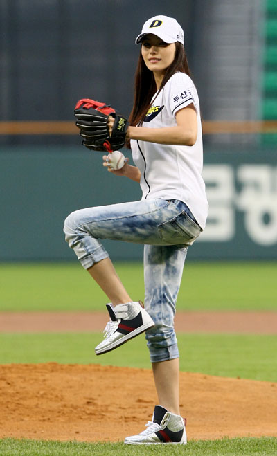 한채영, 생머리 휘날리며 시구