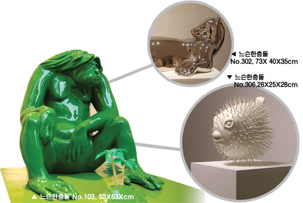 동물 고유의 색을 버리고 인위적인 색상을 선택해서 그로 인한 강렬한 단색과 차갑고 무표정한 표정들은 인공화된, 인간화된, 원시성을 상실한 자연에 대한 현대인들의 자기중심적인 세계관에 대한 고찰, 혹은 경고의 메시지이기도 한 것이다. 아카데믹한 전통 조각의 질감표현이나 색상의 표현을 과감히 저버린 그의 선택은 작품의 의도를 더 확연히 보여주려는 강한 의지가 담긴 것으로 받아들여진다.