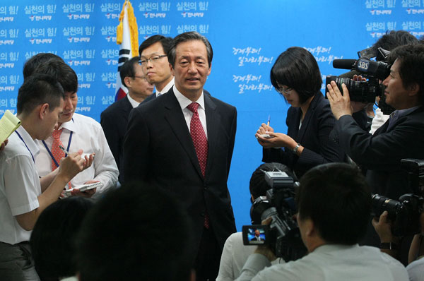 질문공세 받는 정몽준 새 한나라당 대표