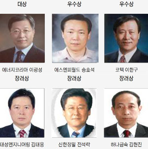 또 우수상은 (주)에스엔피월드 송호석 대표이사와 (주)코텍 이한구 대표이사가 선정됐으며 장려상은 (주)하나금속 김현진 대표이사와 신한정밀(주) 전석락 대표이사, 태성엔지니어링 김태용 대표가 각각 선정됐다.
