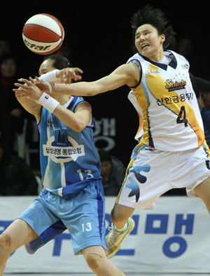 신한은행은 1쿼터에 박정은(15점)과 박언주(14점)에게 각각 3점슛 2개씩을 허용하는 등 삼성생명의 외곽포를 얻어맞으며 한때 9-15, 6점차까지 뒤졌지만 정선민(29점), 최윤아(13점·8리바운드·5어시스트)의 중거리슛으로 삼성생명을 추격해 22-24, 2점차로 따라붙으며 쿼터를 마쳤다.