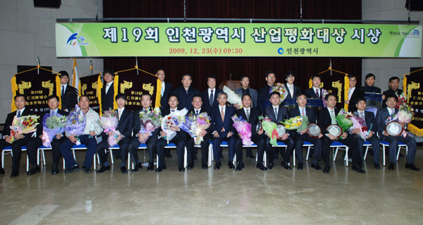 인천시는 23일 시청 대회의실에서 이창구 행정부시장을 비롯 박병만 한국노총인천본부의장, 이종광 인천경총 상임부회장 등 200여명이 참석한 가운데 제19회 인천시산업평화대상 시상식을 개최했다.