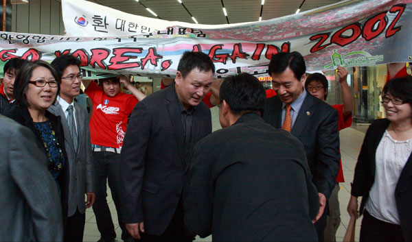 공항에는 요하네스버그에 사는 교민 30여 명이 나와 허정무 감독에게 꽃다발을 전해주고 ‘대∼한민국’ 등을 외치며 환영해줬다.