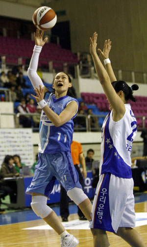 삼성생명은 18일 춘천 호반체육관에서 열린 THE Bank 신한은행 2009~2010 여자프로농구 정규리그 우리은행과 원정 경기에서 26점을 몰아넣은 박정은(6리바운드)과 ‘더블더블’을 기록한 이미선(16점·13리바운드), 이종애(10점·10리바운드) 등 노장 트리오의 활약을 앞세워 60-48로 승리했다.