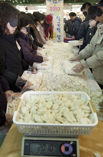 눈 감고 떡국떡 담기