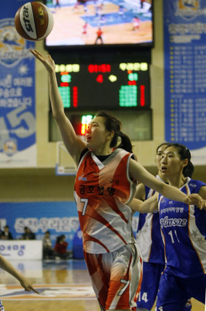 금호생명은 경기초반 지난달 24일 경북 김천 중립경기에서 79-80으로 뼈아픈 역전패을 앙갚음하려는 우리은행의 공세에 밀리며 기선을 빼앗겼다.